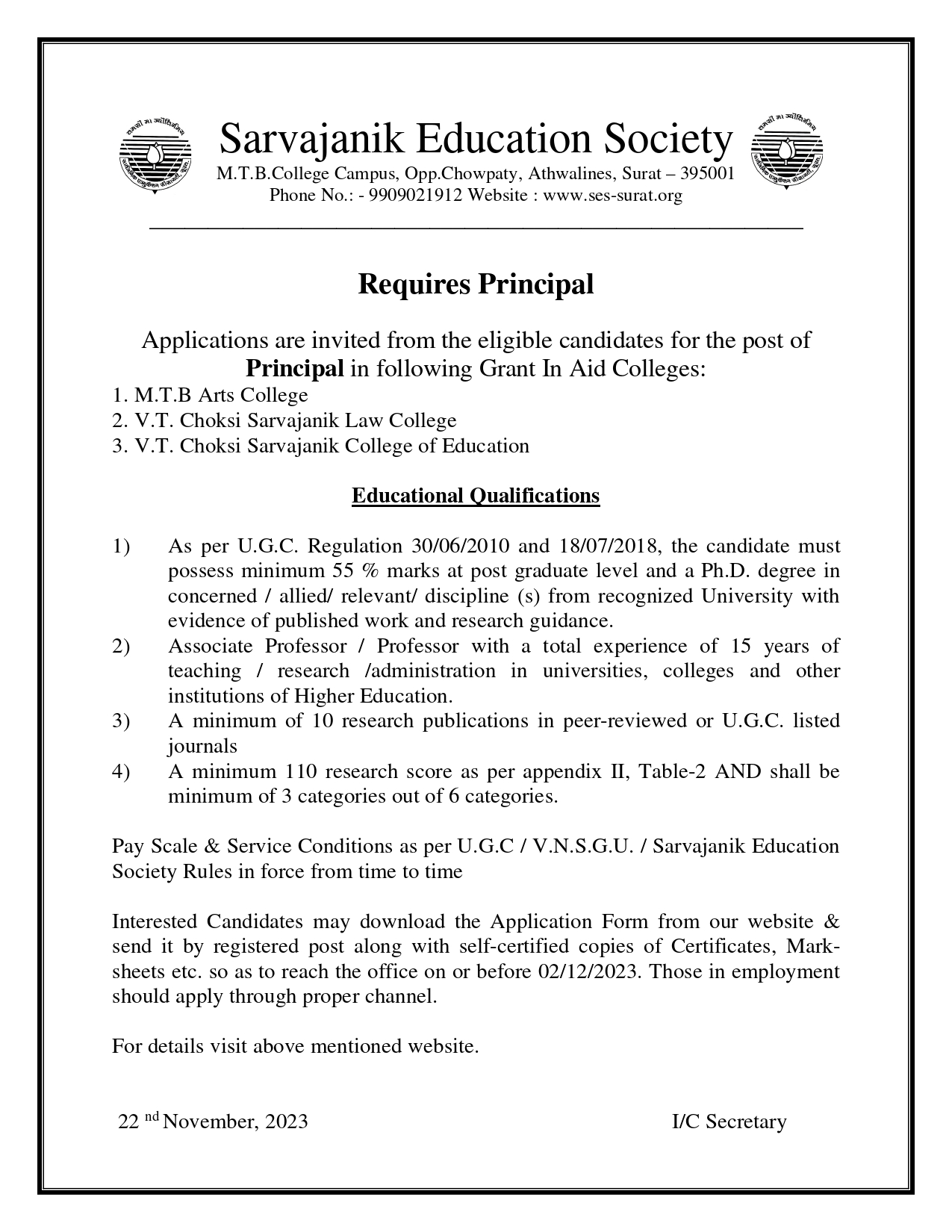 V.T.Choksi College Campus, Lalbunglow, Athwalines, Surat-395001, Gujarat, India.